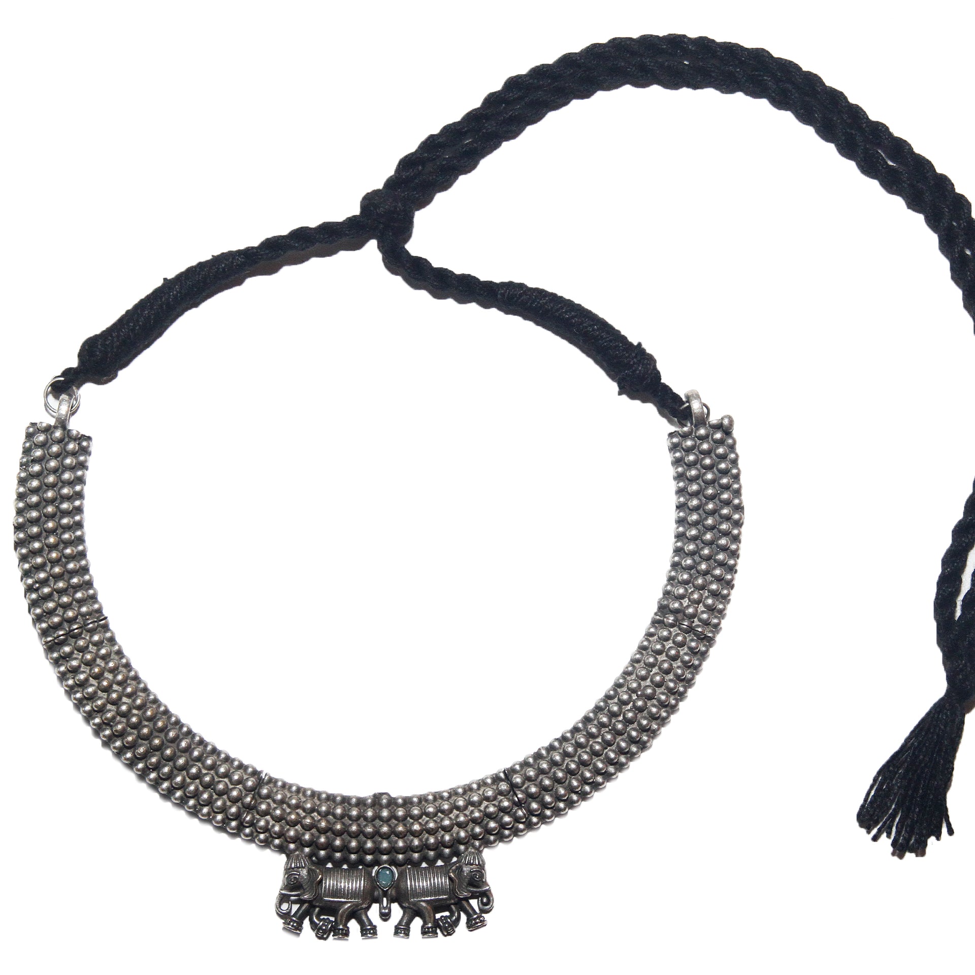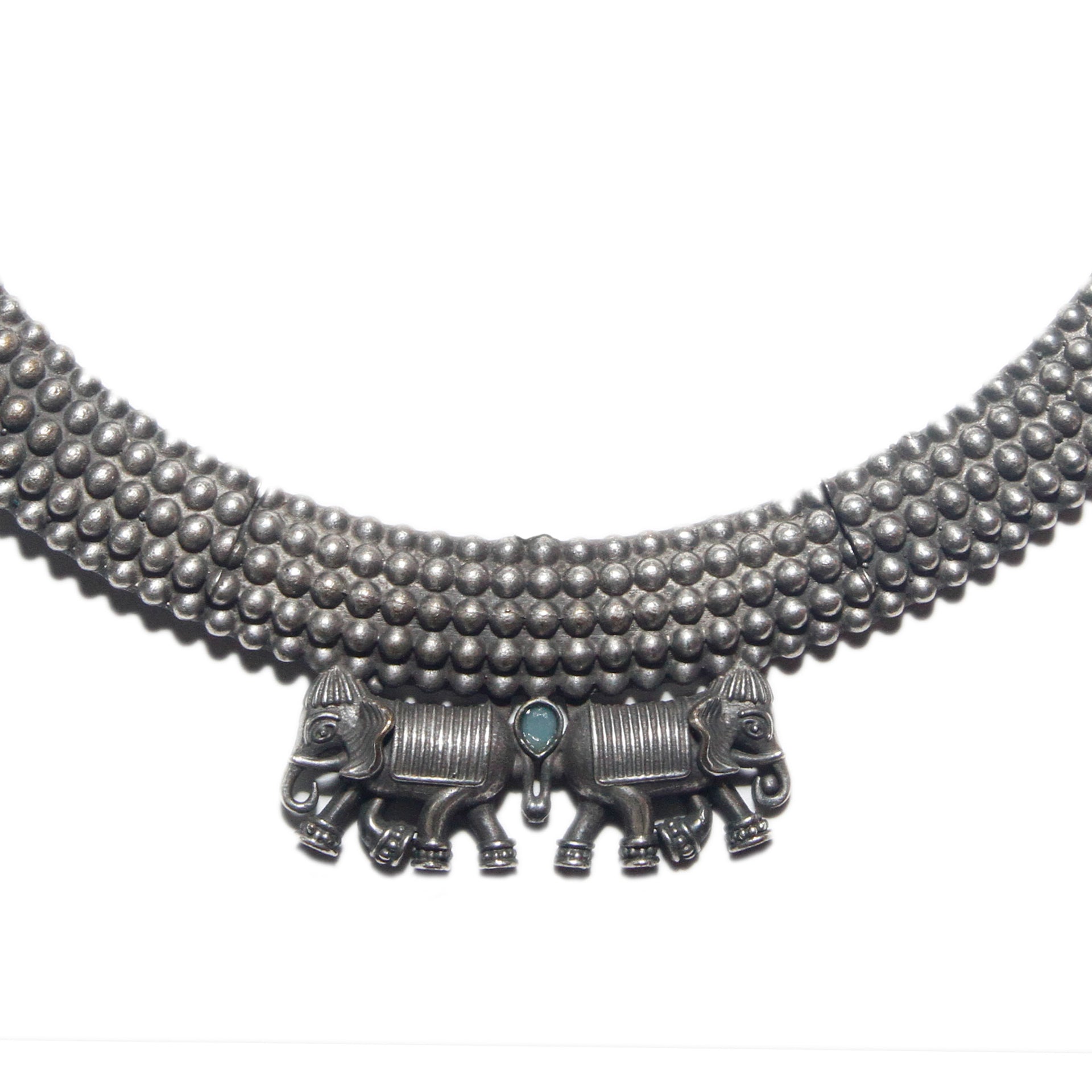 A whisper of heritage and strength — tiny elephants guarding stories untold, resting gently at your collarbone.