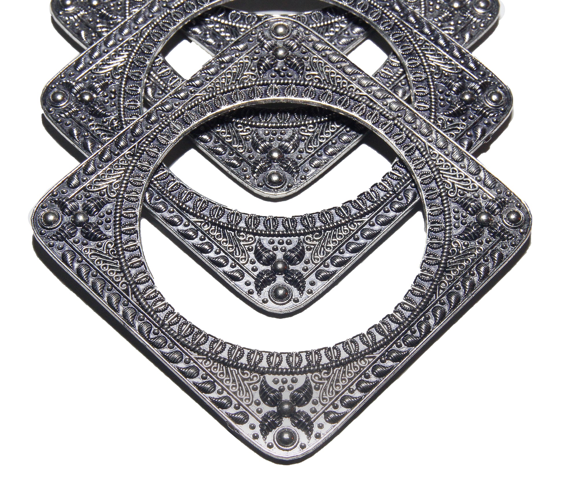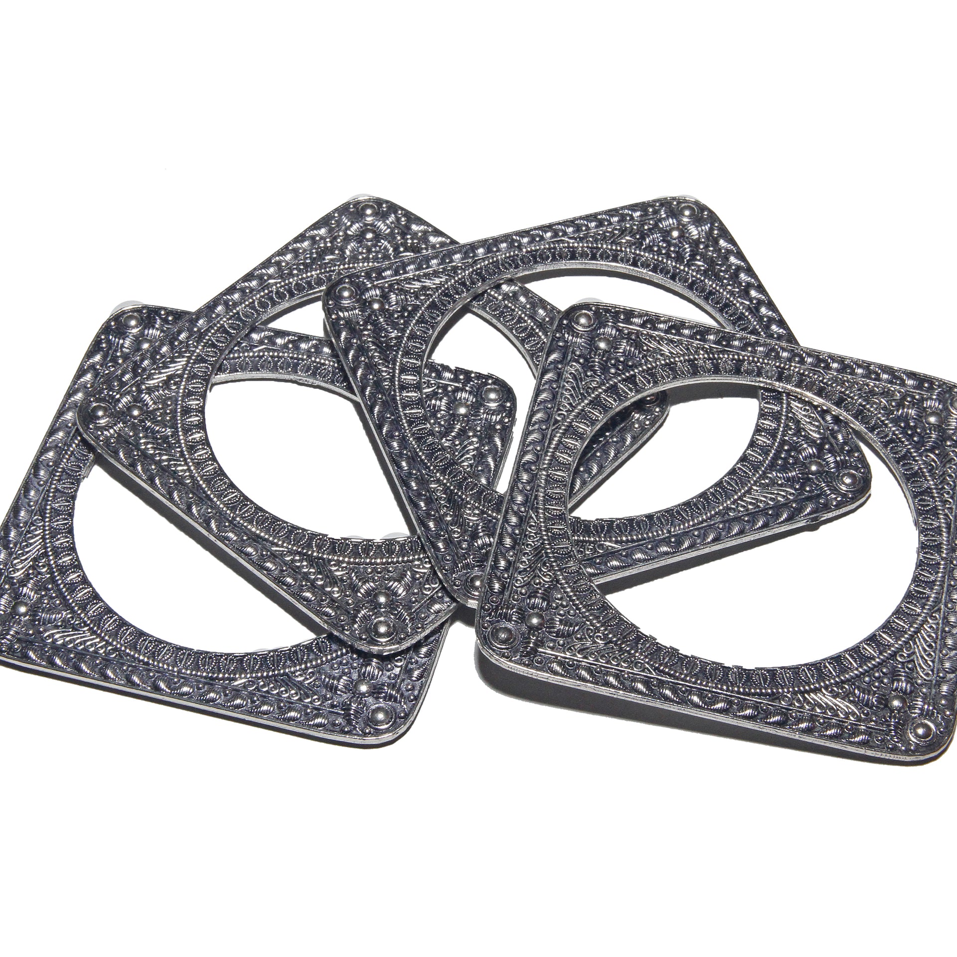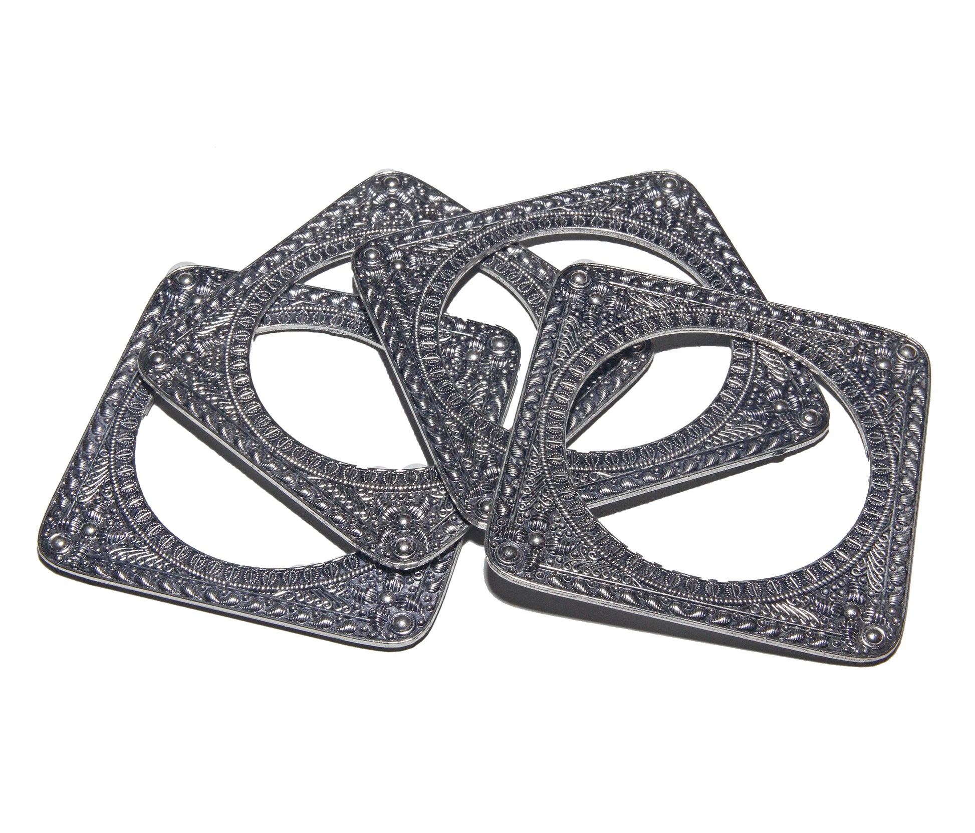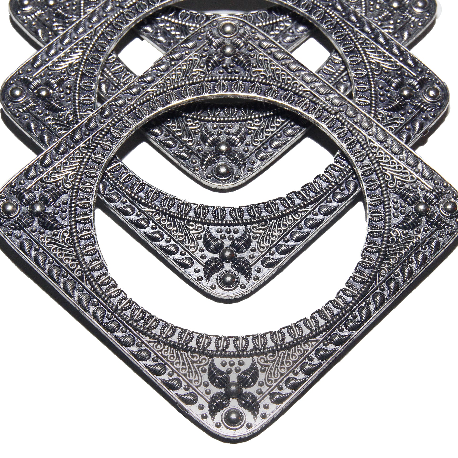 A set of oxidized silver square bangles with intricate handcrafted detailing and a bold cut-out center. Contemporary yet rooted in tradition — perfect for layering or making a statement on their own.